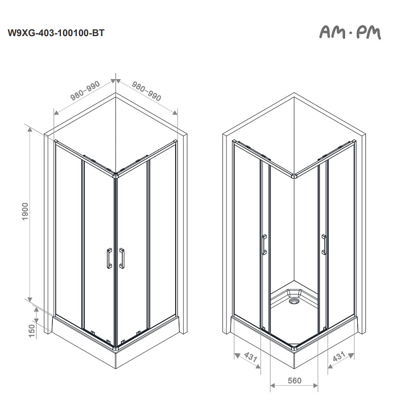Душевое ограждение от бренда AM.PM из коллекции Above - новая функциональная конструкция для оформления душевой зоны в вашем интерьере ванной комнаты. Каждая деталь соответствует высоким требованиям к качеству и эргономике. Стильные коннекторы с логотипом AM.PM, модные ручки с паттерном, дизайнерские ролики повторяющие форму профиля. Современный дизайн, ультратонкие профили шириной всего 30 мм создают максимально воздушный дизайн, минимум профиля и максимум стекла. Цвет профиля - черный матовый. Размер (Ш/Г/В): 980-990x980-990x1900 мм. Материал ограждения - прозрачное стекло; алюминий. Толщина стекла - 5 мм. Форма - квадратная.