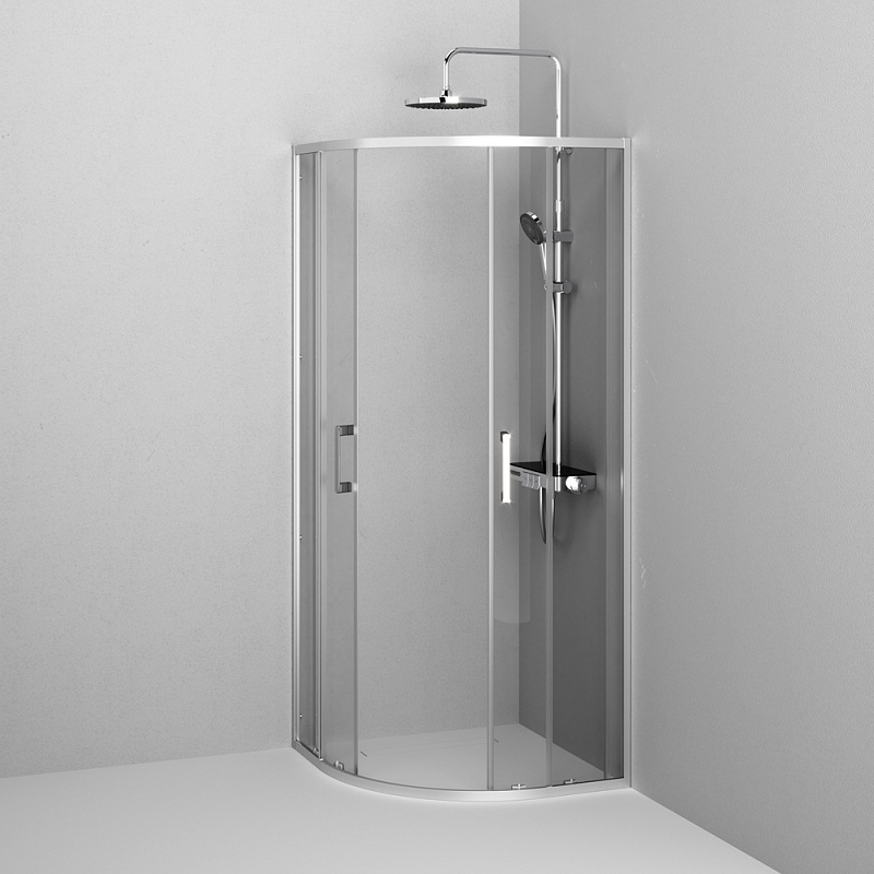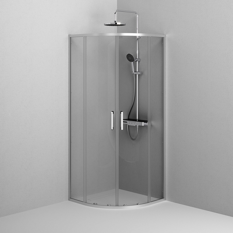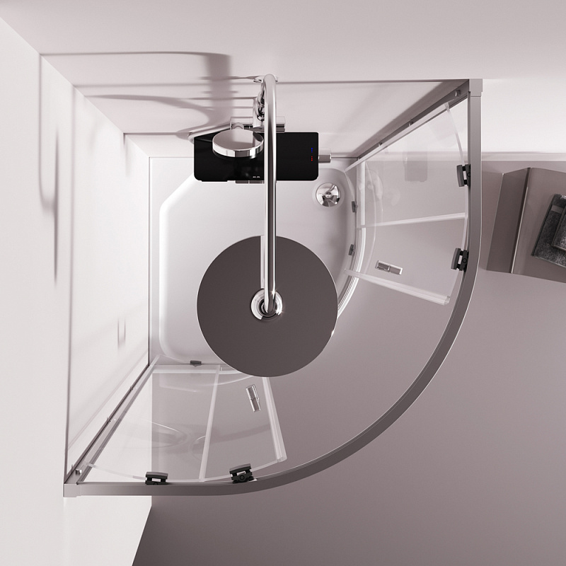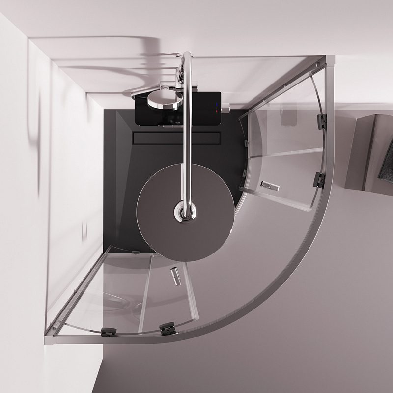 Душевое ограждение от бренда AM.PM из коллекции Above - новая функциональная конструкция для оформления душевой зоны в вашем интерьере ванной комнаты. Каждая деталь соответствует высоким требованиям к качеству и эргономике. Стильные коннекторы с логотипом AM.PM, модные ручки с паттерном, дизайнерские ролики повторяющие форму профиля. Современный дизайн, ультратонкие профили шириной всего 30 мм создают максимально воздушный дизайн, минимум профиля и максимум стекла. Цвет профиля - серебристый. Размер (Ш/Г/В): 780-790x780-790x1900 мм. Материал ограждения - прозрачное стекло; алюминий. Толщина стекла - 5 мм. Форма - 1/4 круга.