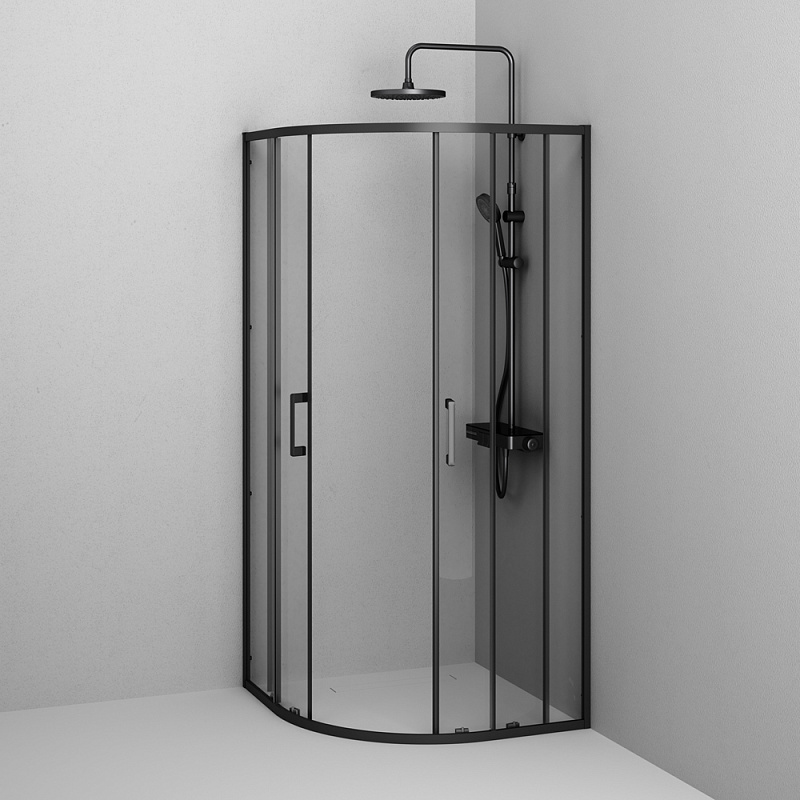 Душевое ограждение от бренда AM.PM из коллекции Above - новая функциональная конструкция для оформления душевой зоны в вашем интерьере ванной комнаты. Каждая деталь соответствует высоким требованиям к качеству и эргономике. Стильные коннекторы с логотипом AM.PM, модные ручки с паттерном, дизайнерские ролики повторяющие форму профиля. Современный дизайн, ультратонкие профили шириной всего 30 мм создают максимально воздушный дизайн, минимум профиля и максимум стекла. Цвет профиля - черный матовый. Размер (Ш/Г/В): 880-890x880-890x1900 мм. Материал ограждения - прозрачное стекло; алюминий. Толщина стекла - 5 мм. Форма - 1/4 круга.