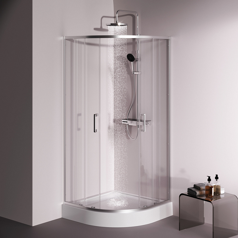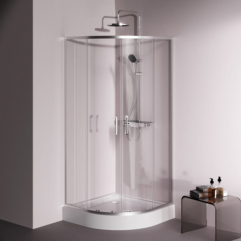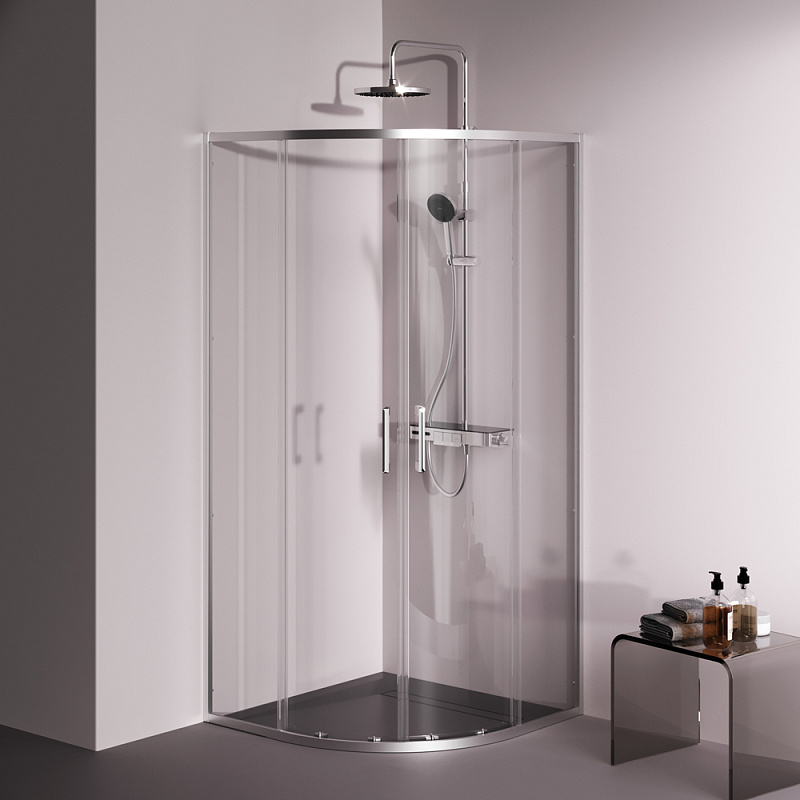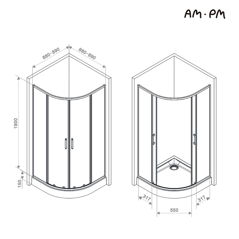 Душевое ограждение от бренда AM.PM из коллекции Above - новая функциональная конструкция для оформления душевой зоны в вашем интерьере ванной комнаты. Каждая деталь соответствует высоким требованиям к качеству и эргономике. Стильные коннекторы с логотипом AM.PM, модные ручки с паттерном, дизайнерские ролики повторяющие форму профиля. Современный дизайн, ультратонкие профили шириной всего 30 мм создают максимально воздушный дизайн, минимум профиля и максимум стекла. Цвет профиля - серебристый. Размер (Ш/Г/В): 880-890x880-890x1900 мм. Материал ограждения - прозрачное стекло; алюминий. Толщина стекла - 5 мм. Форма - 1/4 круга.