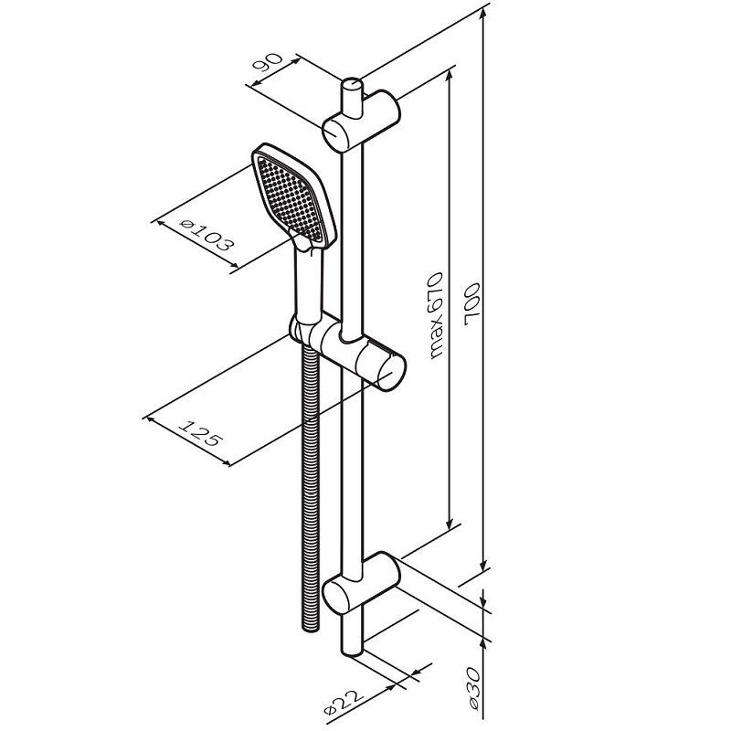 Душевой гарнитур AM.PM Func F018F022 штанга, шланг, лейка 3 режима, черный