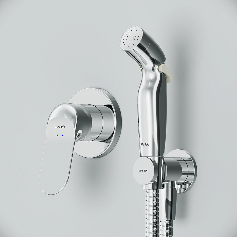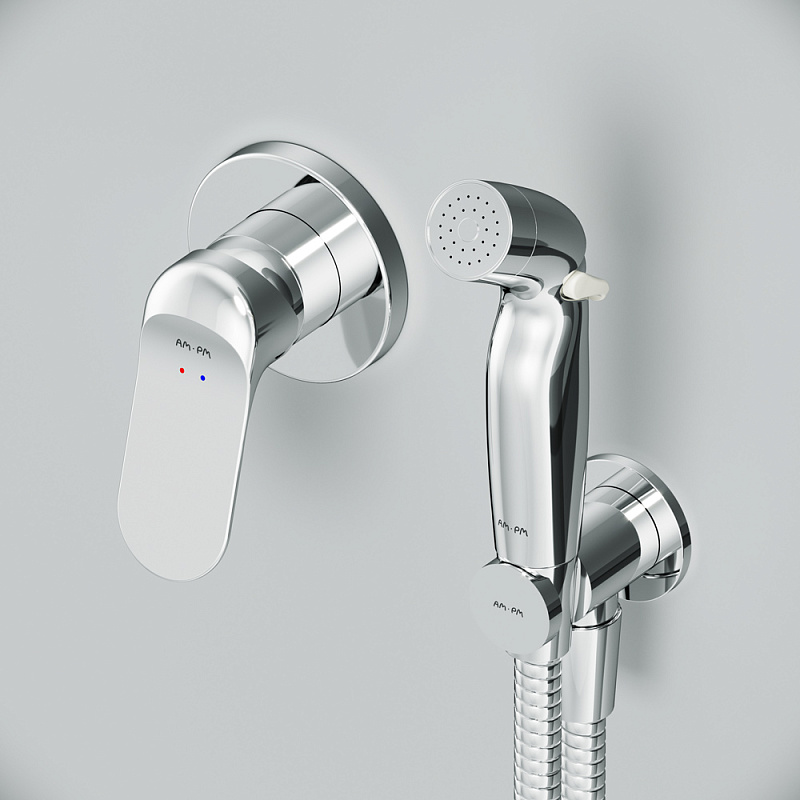 Встраиваемый гигиенический душ со смесителем AM.PM Sunny и шлангом 1200 мм. Материал - латунь. Цвет - хром. 1 режим гигиенического душа - Spray.