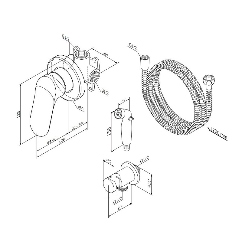 Гигиенический душ со смесителем AM.PM Sunny F40H85C00 хром встраиваемый, шланг 1200, держатель