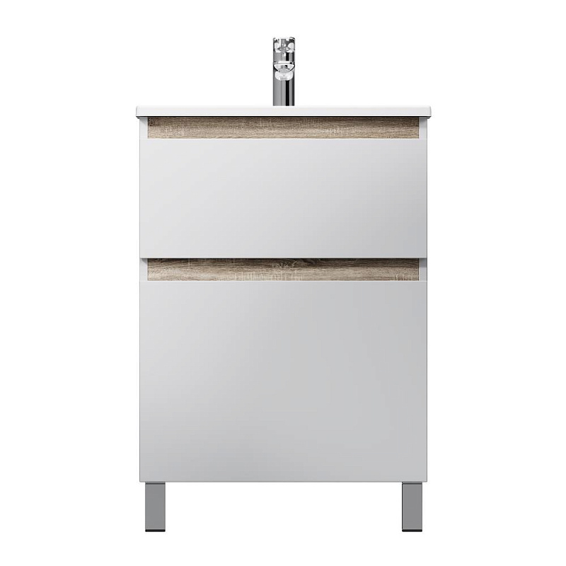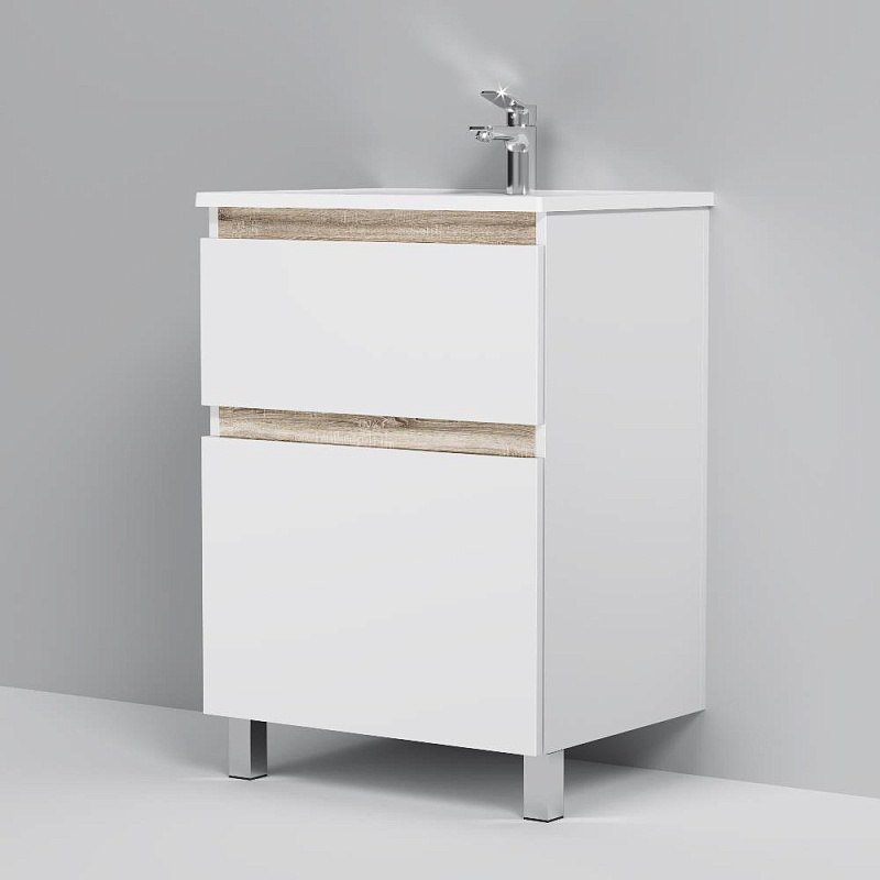 Тумба с раковиной и смесителем 60 AM.PM Gem S M91FSX0602WG напольная на ножках белый глянец