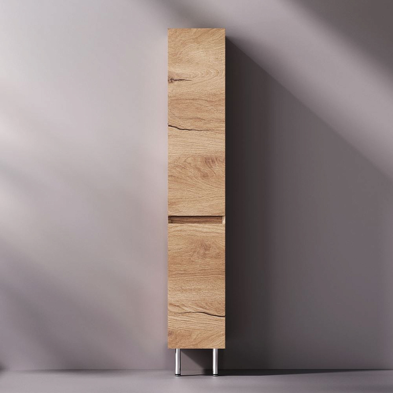 Напольный шкаф-пенал от бренда AM.PM коллекции Libre - баланс форм в актуальной минималистичной эстетике с утонченным силуэтом. Коллекция Above играет с пространством, создавая ощущение лёгкости и простора. Это достигается за счет аккуратного запила фасада и корпуса под углом 45°. Каждая линия работает на эффект невесомости и создаёт ощущение простора даже в компактной ванной комнате. Дизайн разработан студией DanelonMeroni (Великобритания / Италия) и отражает философию коллекции — максимум визуального эффекта без лишних деталей. Размер изделия (Ш/Г/В): 300x320x1820 мм. Цвет - дуб золотой. Материал корпуса и фасада - 16 мм ЛДСП текстурированный. Покрытие фасада - ламинат. Покрытие корпуса - ламинат.