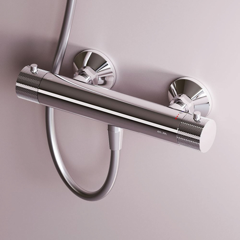 Термостатический смеситель для душа AM.PM коллекции Libre — переосмысление современного минимализма в линейке AM.PM. Коллекция Libre объединяет мягкие плавные линии и чёткую геометрию, создавая ощущение лёгкости, простора и визуального баланса. Дизайн, разработанный совместно со всемирно известным агентством Brandis, Германия, не просто приковывает к себе внимание, а задает атмосферу всей ванной комнаты. Такое решение требует высокой точности производства и формирует цельный, визуально безупречный силуэт. Размер смесителя (Ш/Г/В): 287x98x71 мм. Материал - Нержавеющая сталь, PPA, Zamak 3. Цвет - хром. Тип управления - термостатический.