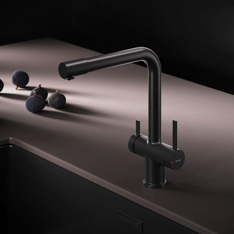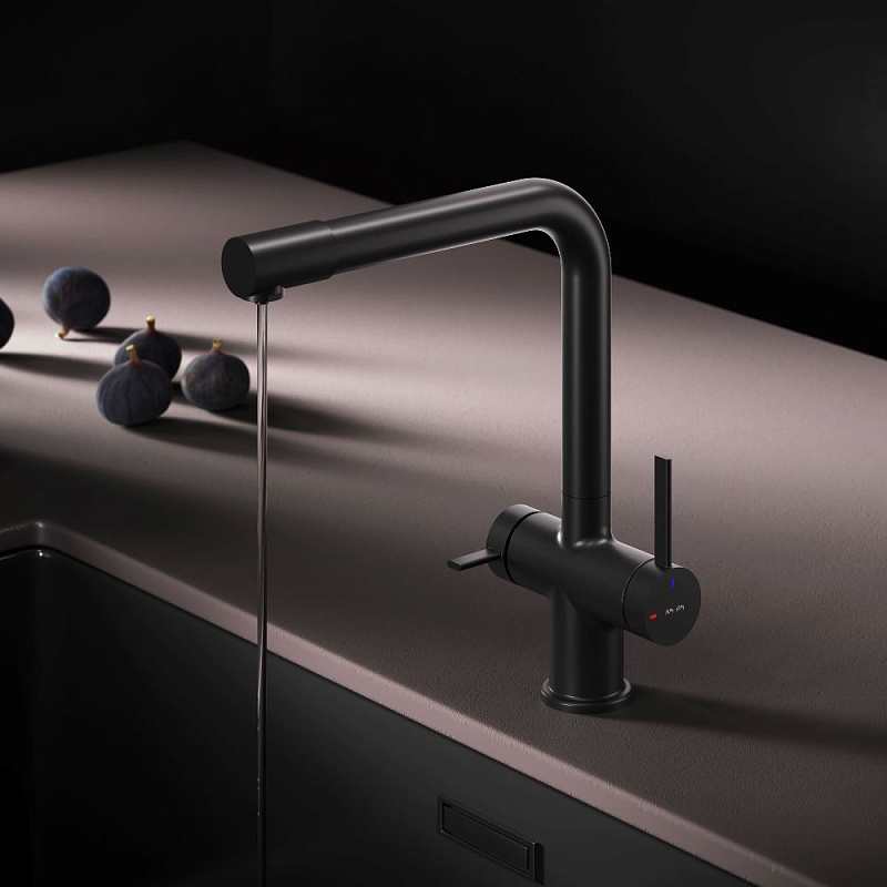 Смеситель для кухни AM.PM Func F8F05722 высокий с L-изливом с каналом для питьевой воды, черный