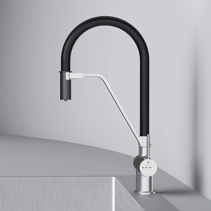 Товар Смеситель для кухни AM.PM Func F8F07812 высокий, сатин с каналом для питьевой воды и гибким черным изливом представлен в каталоге AM.PM на официальном сайте ampm-store.ru в России. Получите профессиональную консультацию в шоуруме Москвы на ул Клинская, д.6, ознакомьтесь с описанием, характеристиками, инструкциями, отзывами покупателей, рекомендациями производителя, чтобы выбрать и заказать лучшее из каталога сантехники AM.PM. Сделайте выбор – получить заказ с доставкой или самовывозом.