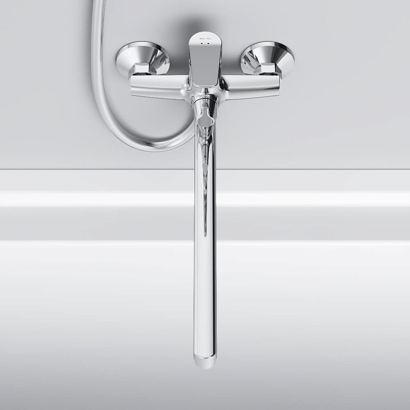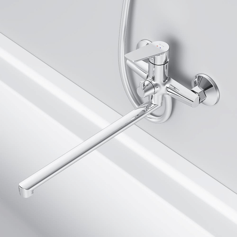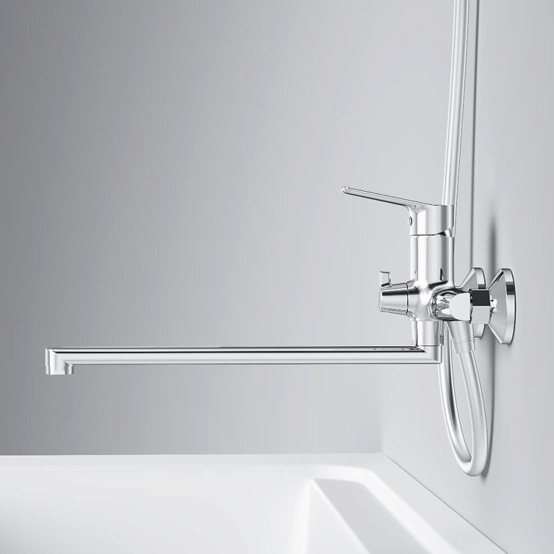 • универсальный длинный излив позволяет использовать смеситель как для ванны так и для рядом стоящей раковины;