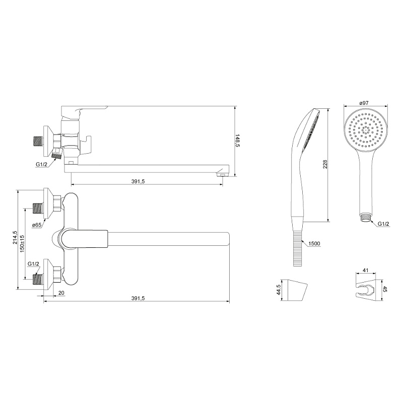 Смеситель для ванны и душа AM.PM Fortuna 459500000LM с душевым набором, хром