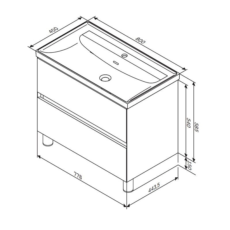 Тумба под раковину 80 AM.PM Above M9XFSX0802WG напольная, белая глянцевая