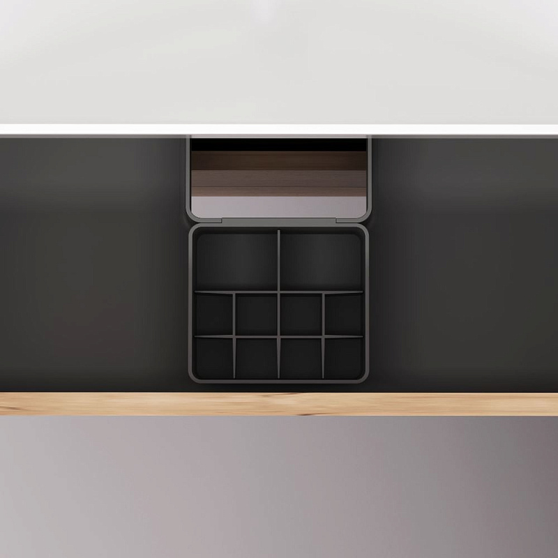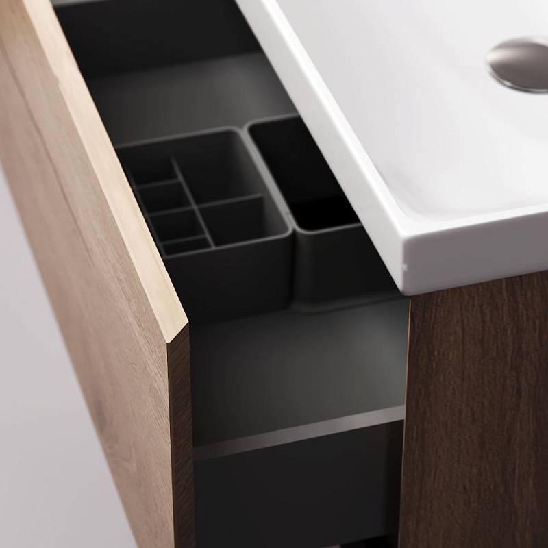 Дополните тумбу раковиной коллекции Above - раковина выполнена с мягкими, обтекаемыми линиями. Такая геометрия подчёркивает современный итальянский характер коллекции и формирует цельный, гармоничный силуэт. Глубокая чаша обеспечивает аккуратное использование, а интегрированная полочка с бортиком от перелива воды позволяет удобно разместить мокрые предметы и аксессуары.