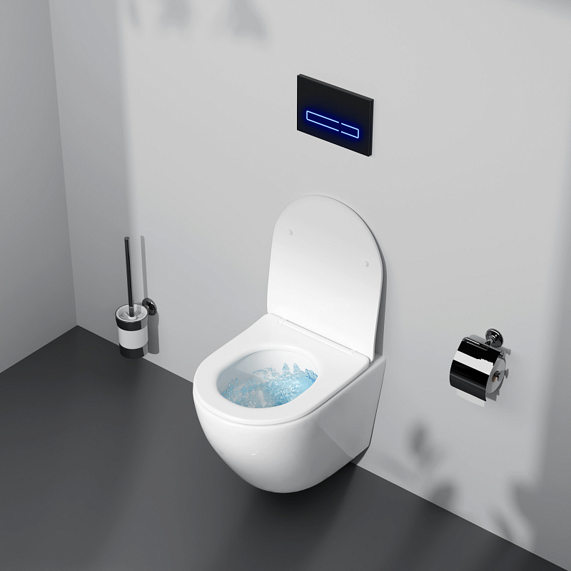Безободковый дизайн с технологией смыва AquaSpin, использующей вихревой поток для лучшего очищения чаши унитаза, воссоздан в подвесном унитазе бренда AM.PM коллекции Like. Дизайн смыва разработан немецким агентством Brandis. Размер унитаза (Ш/Г/В): 360x490x345 мм. Цвет – белый.