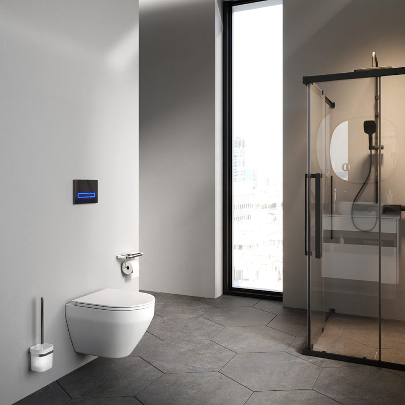 Унитаз подвесной безободковый с инсталляцией AM.PM ErgoFit IS110138.741701 сиденьем микролифт, черной механ. клавишей