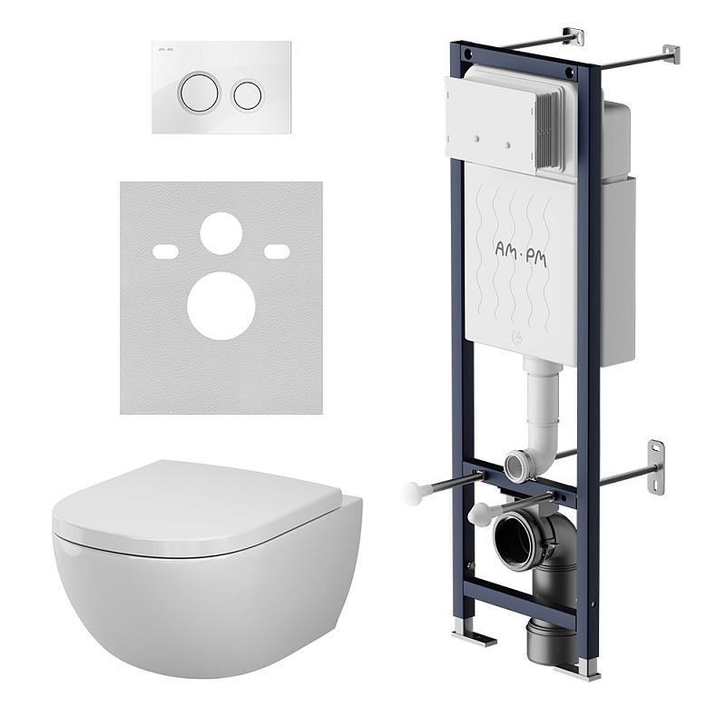 Готовый комплект к установке: система инсталляции для подвесного унитаза AM.PM Above IS110101.9X1900 с мехенической белой клавишей, подвесной унитаз AM.PM Above C9X1900SC.
