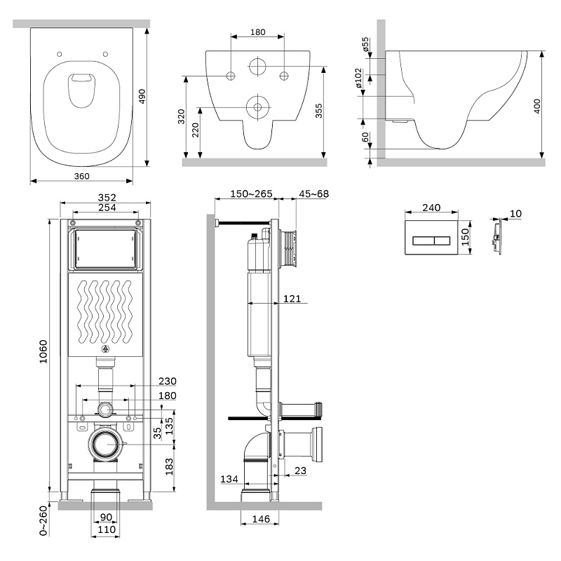 Инсталляция для подвесного унитаза бренда AM.PM коллекции ErgoFit с механическим управлением смыва включает в себя максимально полный комплект поставки: крепления, патрубки, звукоизолирующую прокладку, двухрежимную клавишу смыва. Подвод воды: Сверху универсальный (справа или слева). Размер инсталляции(Ш/Г/В): 352x150-265x1060-1320 мм. Размер клавиши (Ш/Г/В): 240x10x150 мм. Цвет и материал: синий каркас из нержавеющей стали, белый бачок из ABS-пластика, черная клавиша. Форма кнопок: прямоугольные.