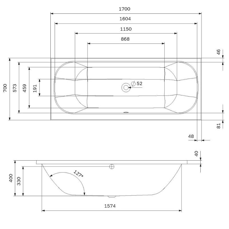 Прямоугольная ванна бренда AM.PM коллекции Above впервые в доступном сегменте ванна с центральным сливом-переливом (признак премиального сегмента). Размер изделия (Ш/Г/В): 1700x700x400 мм. Цвет – белый глянцевый. Материал - ABS, PMMA.