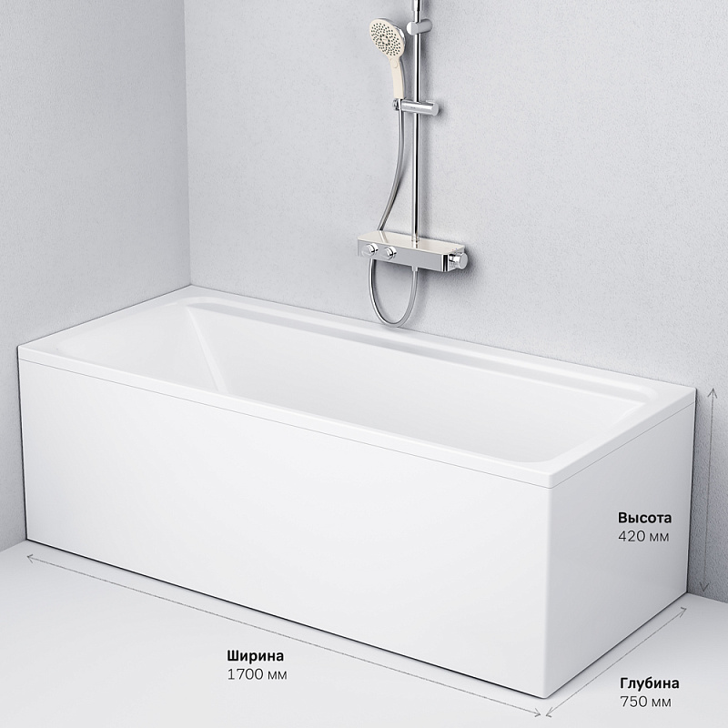 Прямоугольная ванна бренда AM.PM коллекции Inspire 2.0, созданная немецким дизайнерским агентством Design3, обладает стильными и элегантными формами. Размер изделия (Ш/Г/В): 1700x750x420 мм. Цвет – белый глянцевый. Материал - акрил.