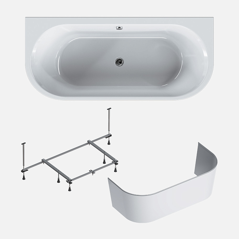 Ванна акриловая закругленная 180x80 AM.PM X-Joy W94A-180U80W-ARP белая глянцевая комплект c каркасом, панелью
