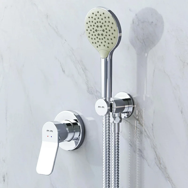 Встраиваемая душевая система AM.PM коллекции X-Joy состоит из смесителя для ванны и душа, душевой лейки с держателем. Встраиваемая душевая система - дизайнерский продукт в своем ценовом сегменте, разработанный дизайн-агентством GP designpartners из Австрии в 2019 году. Эргономичная форма и расположение рукояток обеспечивают максимальный комфорт при регулировке, а специально спроектированный для АМ.РМ керамический картридж SoftMotion 35 мм обеспечивает оптимальную регулировку температуры а также позволяет выдерживать любые перепады давления.