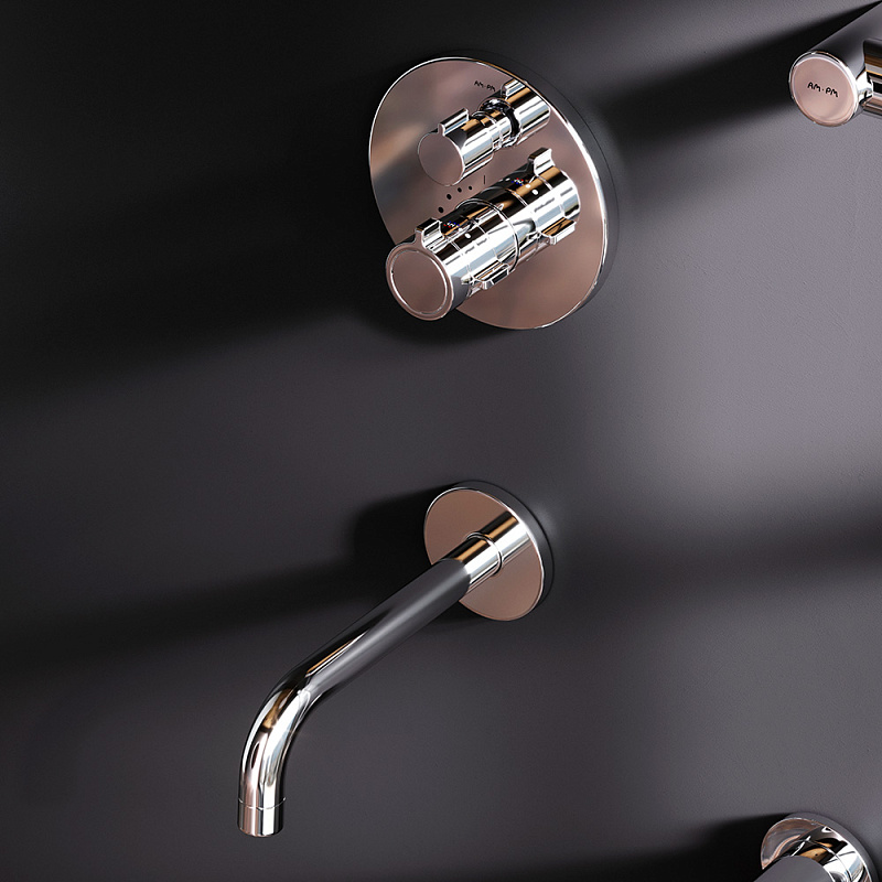 Встраиваемая душевая система AM.PM X-Joy FT85A3RH40 хром: тропический верхний душ, излив с душевой лейкой, термостат купить в Москве.